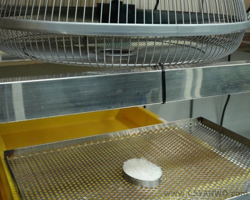 加工人会把挑出来的溯源码燕碎,放进溯源码燕饼的模具里,压紧之后再拿去风干间进行风干。